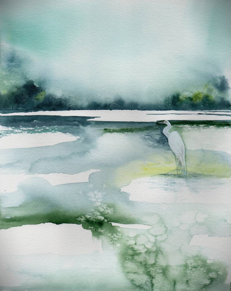 “Silencio de garza – Serie Horizontes de agua / Acuarela. Precio $45.000 /$65.000”