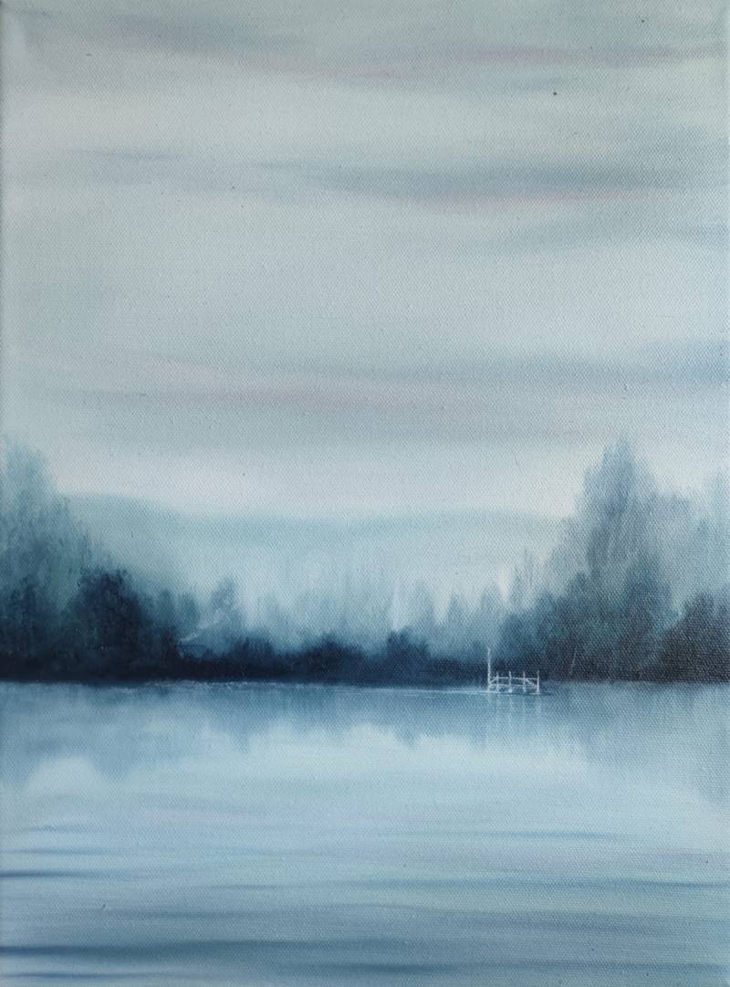 “Pausa del río – Serie Horizontes de agua / Óleo. Precio $100.000”